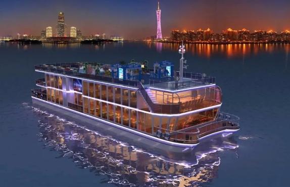 ????280客位珠江夜游船總長(zhǎng)38.8米,型寬12.0米,型深3.2米,航速10.0節(jié),是粵港澳大灣區(qū)首艘入級(jí)商業(yè)運(yùn)營(yíng)新能源客船,外觀設(shè)計(jì)新穎獨(dú)特,純電池動(dòng)力突顯低噪音、低排放、綠色環(huán)保的優(yōu)勢(shì),對(duì)于推動(dòng)粵港澳大灣區(qū)旅游和交通產(chǎn)業(yè)的綠色發(fā)展具有重要意義。