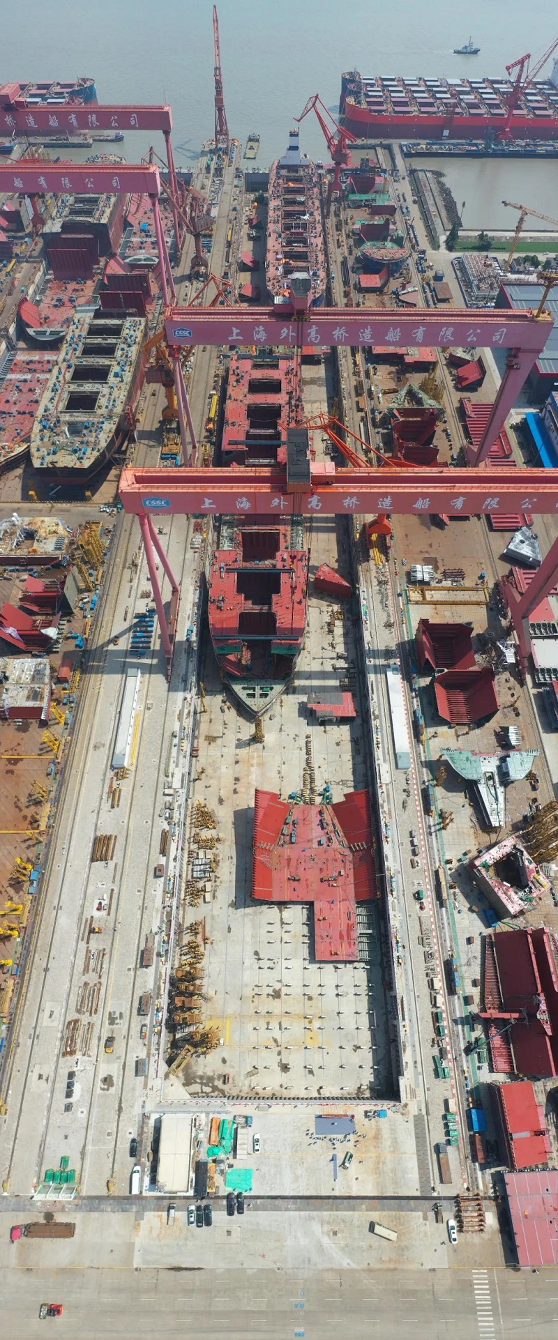 自2001年投產以來,外高橋造船在2號船塢先后建造了VLCC、FPSO、自升式海上石油鉆井平臺、40萬噸超大型礦砂船(VLOC),以及榮獲國家科技進步獎特等獎的深水半潛式石油鉆井平臺“海洋石油981”號等一批品牌產品。