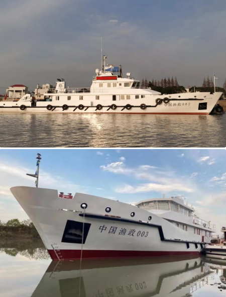 2020年12日26日,“中國漁政002”和“中國漁政003”正式交接兩艘船作為旗艦,自2021年1月1日起開展長江“十年禁漁”漁業執法和保護。兩艘200噸級漁政船為姊妹船