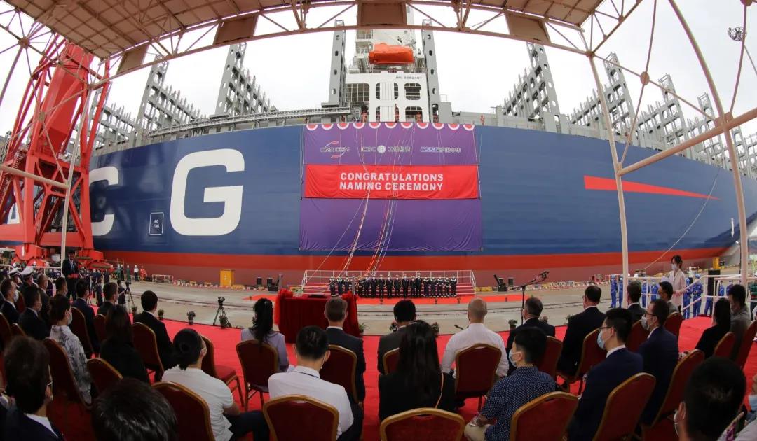 今年4月,雙方再度攜手,簽訂了6艘15000TEU雙燃料動力集裝箱船、6艘13000TEU雙燃料動力集裝箱船和10艘5500TEU常規動力集裝箱船等共3型22艘集裝箱船建造訂單,刷新了中國船舶集團承接單筆金額最大的集裝箱船訂單紀錄,法國達飛集團也成為中國船舶集團在集裝箱船領域全球最大的合作伙伴。(點擊查看詳情>>)