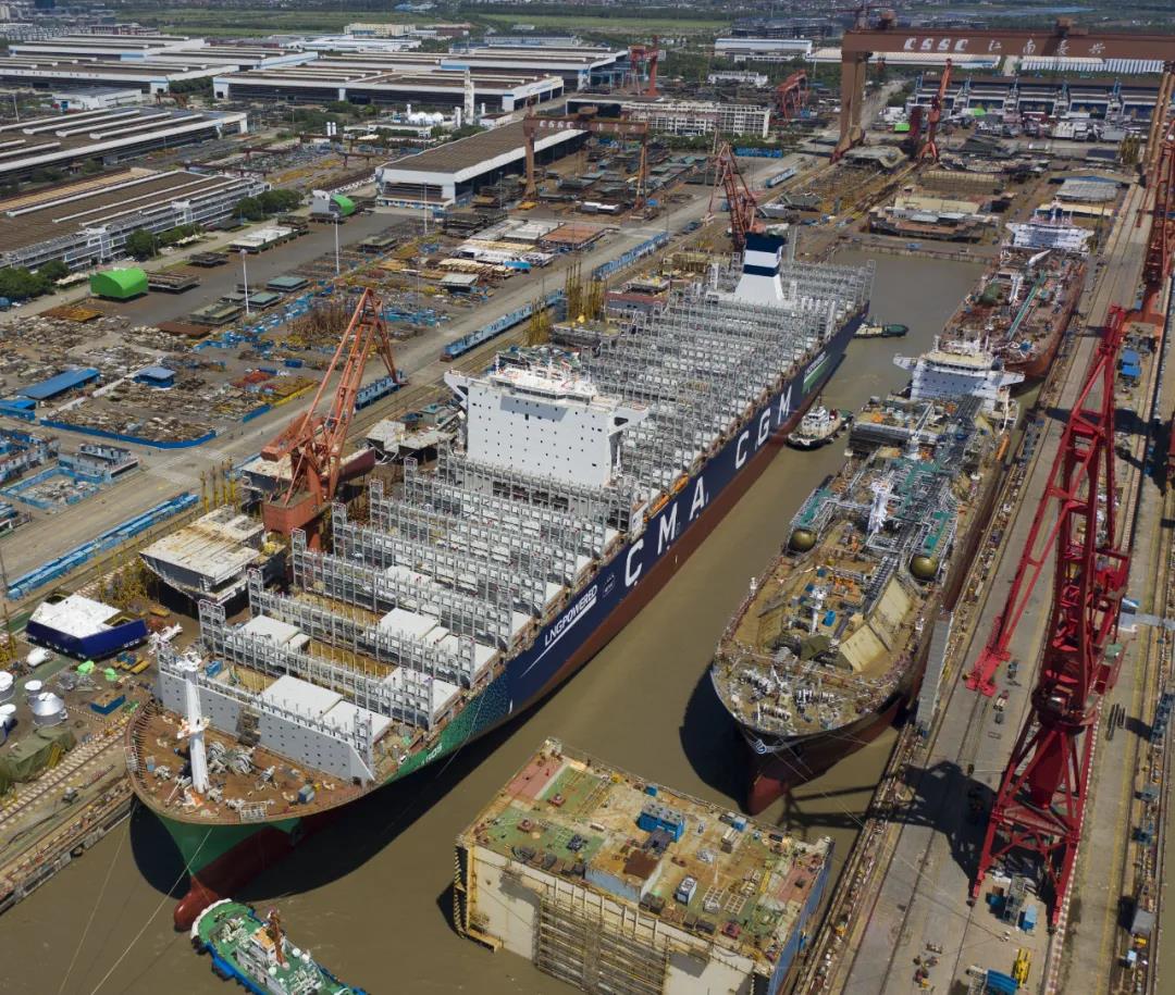此次共有1艘15000TEU雙燃料集裝箱船、1艘86000立方米超大型雙燃料液化氣船、1艘98000立方米超大型液化乙烷運(yùn)輸船等3型號(hào)共計(jì)3艘整船出塢,同時(shí)還有2型2艘半船同批次起浮。
