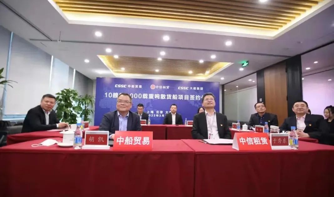 3月29日,中國(guó)船舶集團(tuán)旗下中船貿(mào)易聯(lián)合大船集團(tuán)與中信金融租賃有限公司以“云簽約”的形式正式簽署10艘6.5萬噸散貨船新造船合同。該批船舶完工交付后將租賃給國(guó)內(nèi)一流航運(yùn)公司,服務(wù)國(guó)家資源能源運(yùn)輸,主要運(yùn)營(yíng)國(guó)內(nèi)沿海航線及長(zhǎng)江沿線。