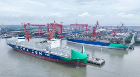 近日,中國船舶集團旗下滬東中華建造的13000TEU雙燃料集裝箱船“達飛·貝倫”號命名交付。該公司上半年實現累計交船12艘,完成年度計劃的60%。