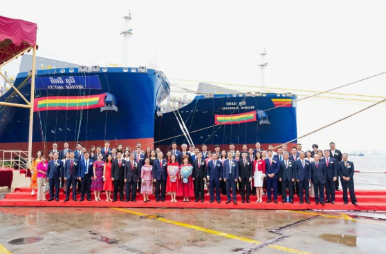 9月3日,中國(guó)船舶集團(tuán)旗下外高橋造船聯(lián)合中船貿(mào)易為泰國(guó)RCL公司建造的系列7000TEU集裝箱船的第二艘船“ITTHI BHUM”號(hào)、第三艘船“HEMMA BHUM”號(hào)命名交付。